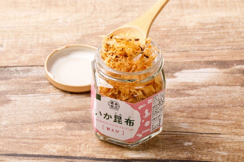 【原材料】イカ加工品、塩昆布、醤油(大豆、小麦を含む)、ごま、甘えび粉末、食塩/調味料(アミノ酸等)