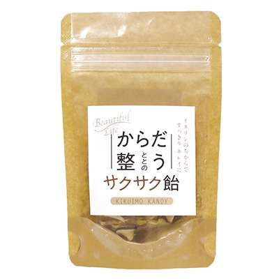 秋田県男鹿市で無農薬栽培された菊芋を加工した無添加飴です。原料は水飴、グラニュー糖、菊芋。サクサクとした噛みごたえのある食感が特徴です。